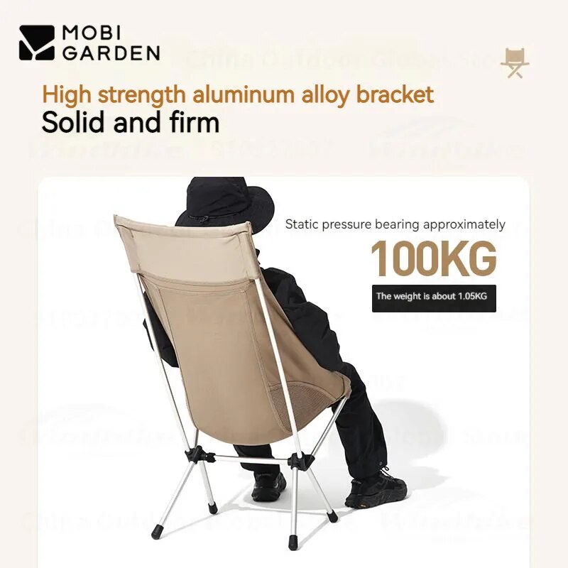 MOBI GARDEN Folding Moon Chair Outdoor Camping Relax Recline Ultralight Portable Small Large High Low Back Aluminum Alloy Oxford Seat 100kg Max Load Foldable with Storage Bag Mobigarden