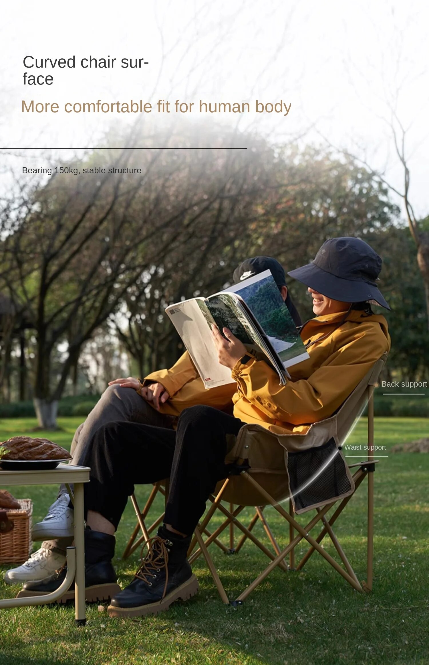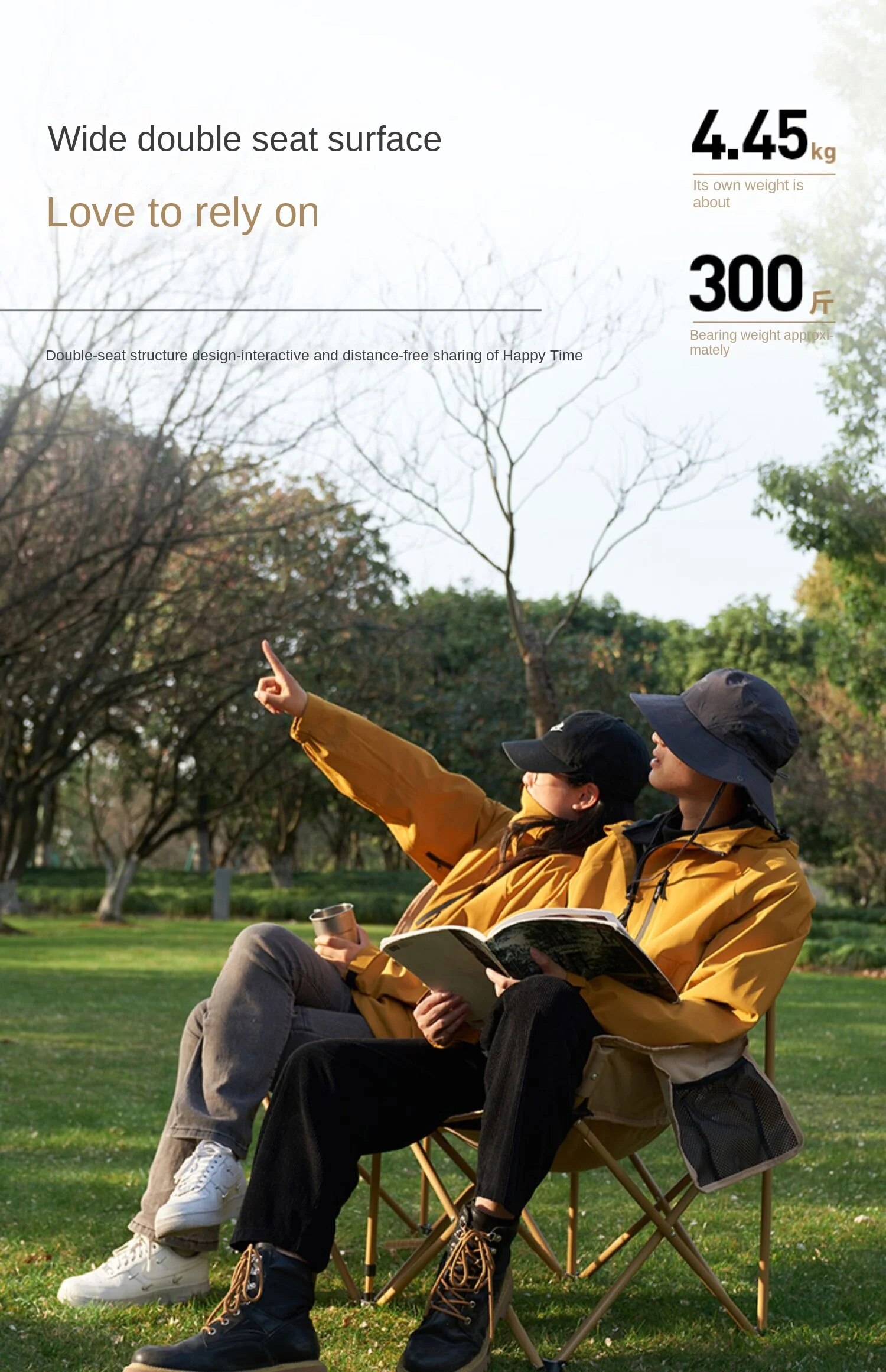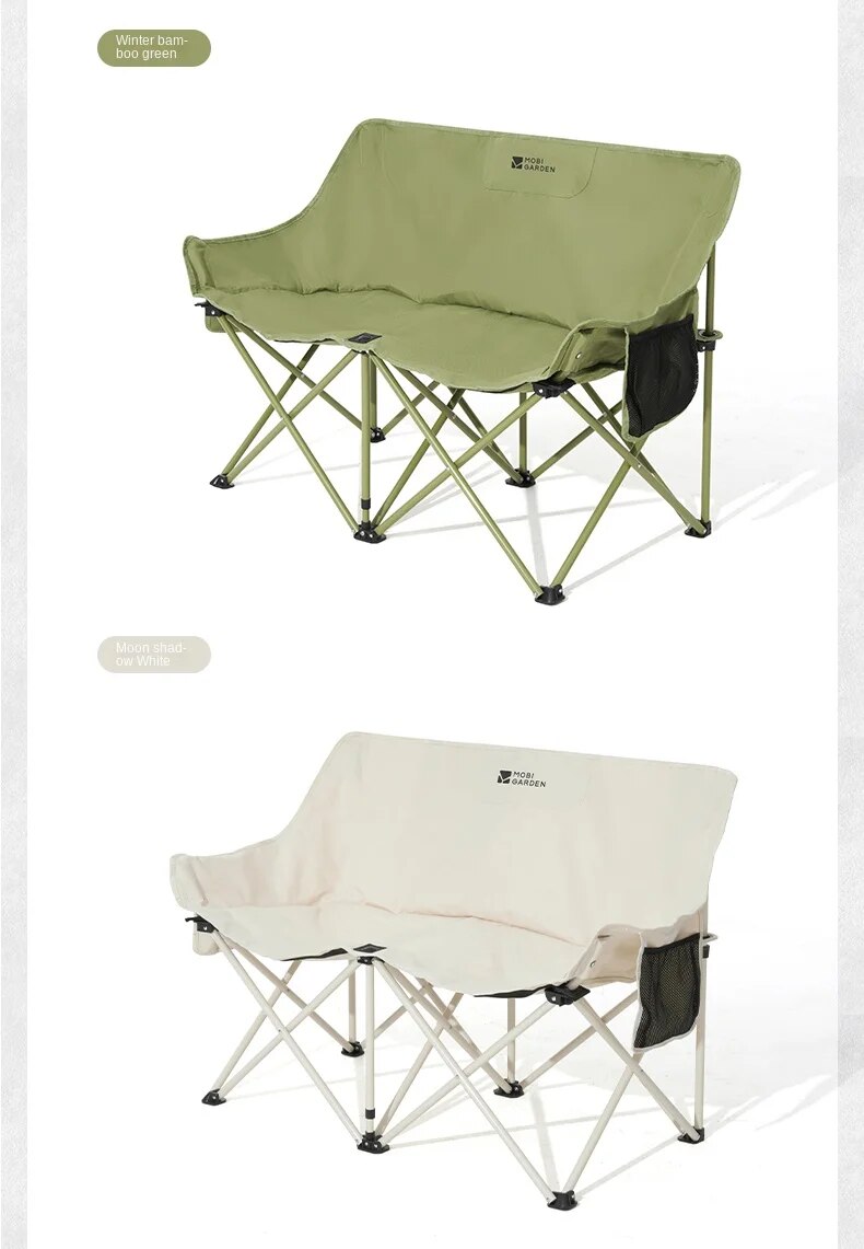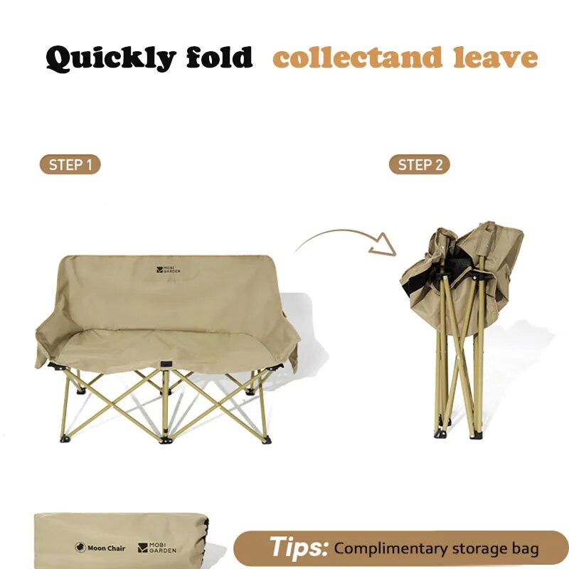 MOBI GARDEN Large Double Folding Moon Chair Outdoor Foldable Camping Easy Assemble Storage 150kg Max Load Stable Steel Pipe Frame 600D Oxford Portable Seat with Storage Bag Mobigarden