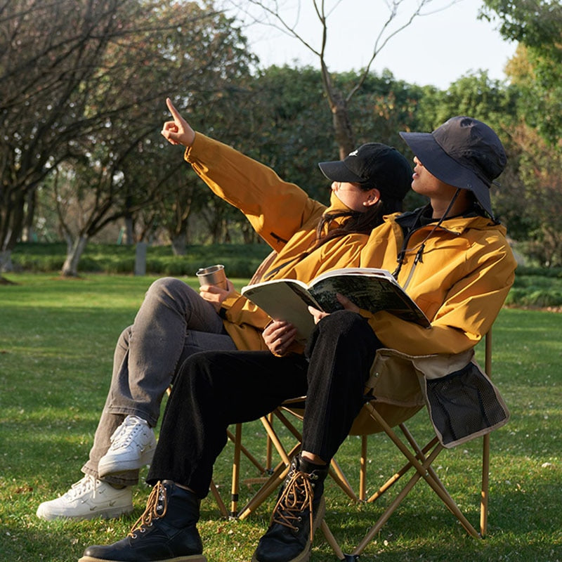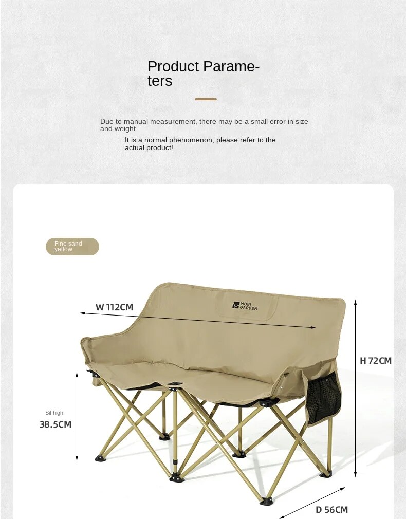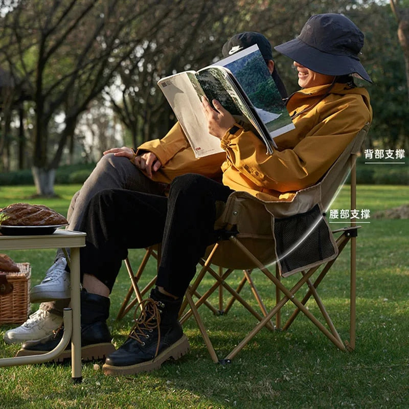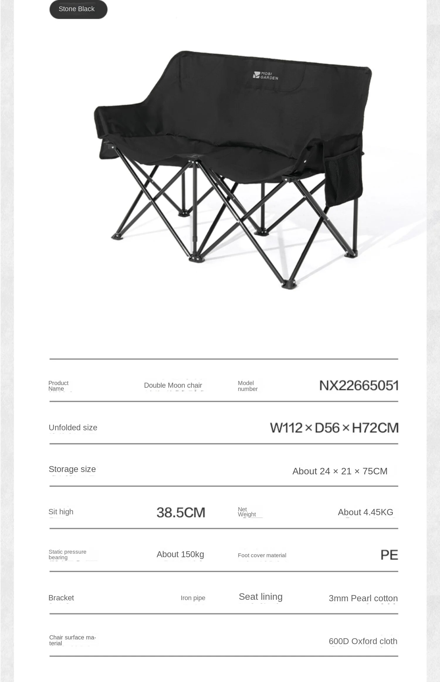 MOBI GARDEN Large Double Folding Moon Chair Outdoor Foldable Camping Easy Assemble Storage 150kg Max Load Stable Steel Pipe Frame 600D Oxford Portable Seat with Storage Bag Mobigarden