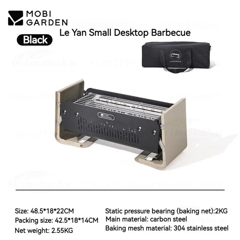 Mobi Garden LeYan Small Desktop BBQ Charcoal Grill Stove Outdoor Camping Picnic Portable Folding Tabletop Burner Ultralight Carbon Steel Body Stainless Steel Grill Net with Storage Bag Mobigarden