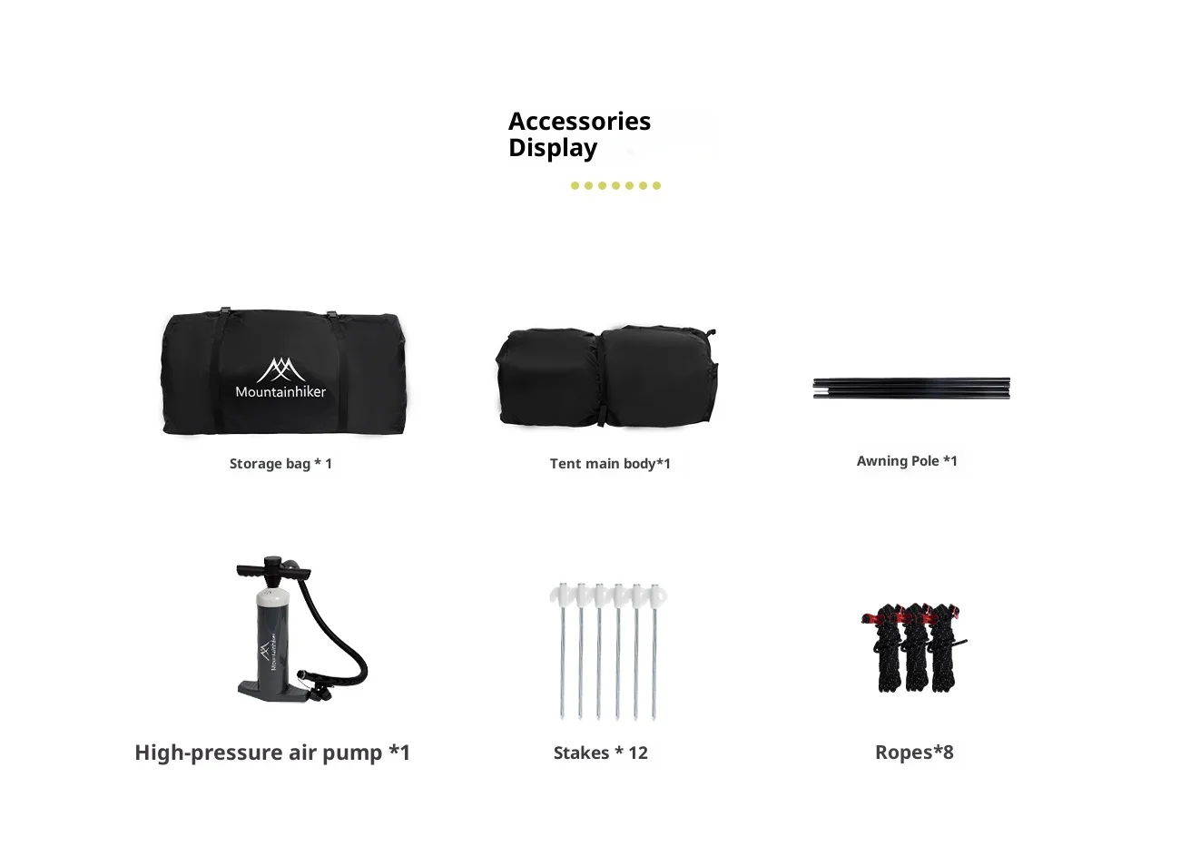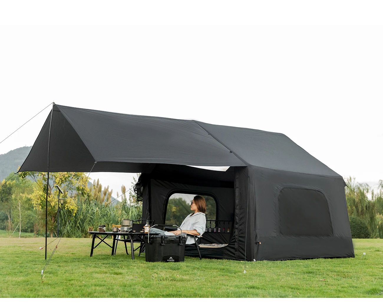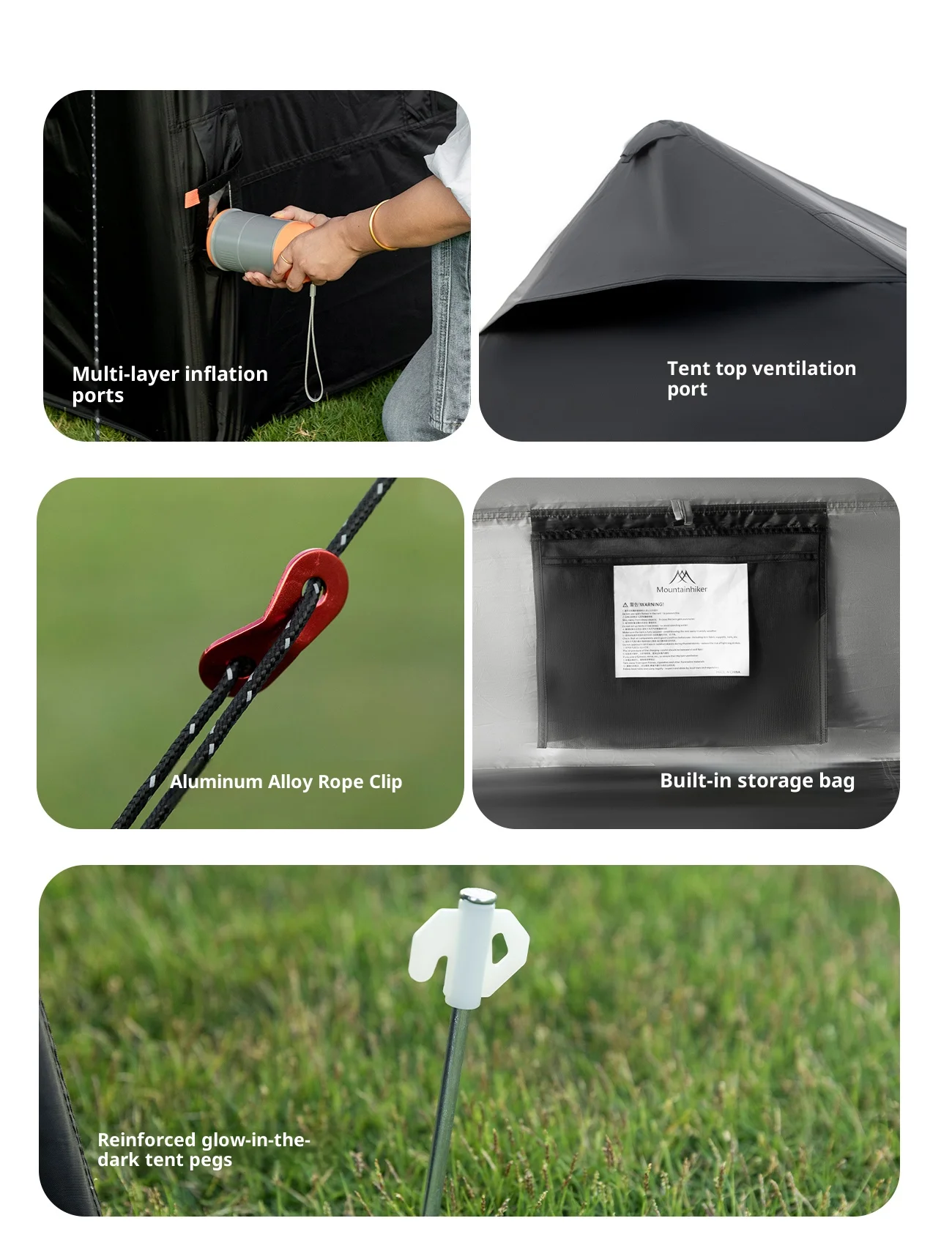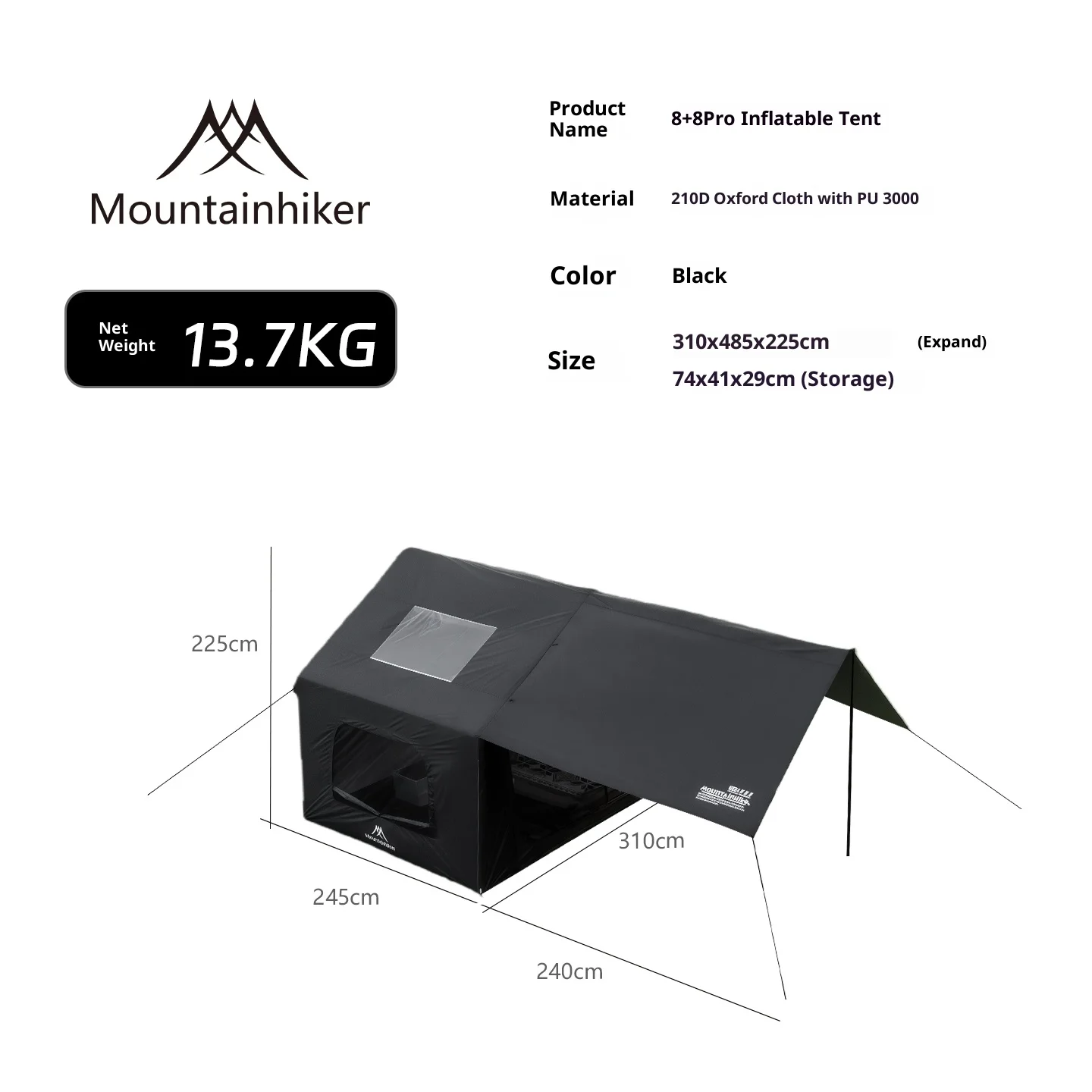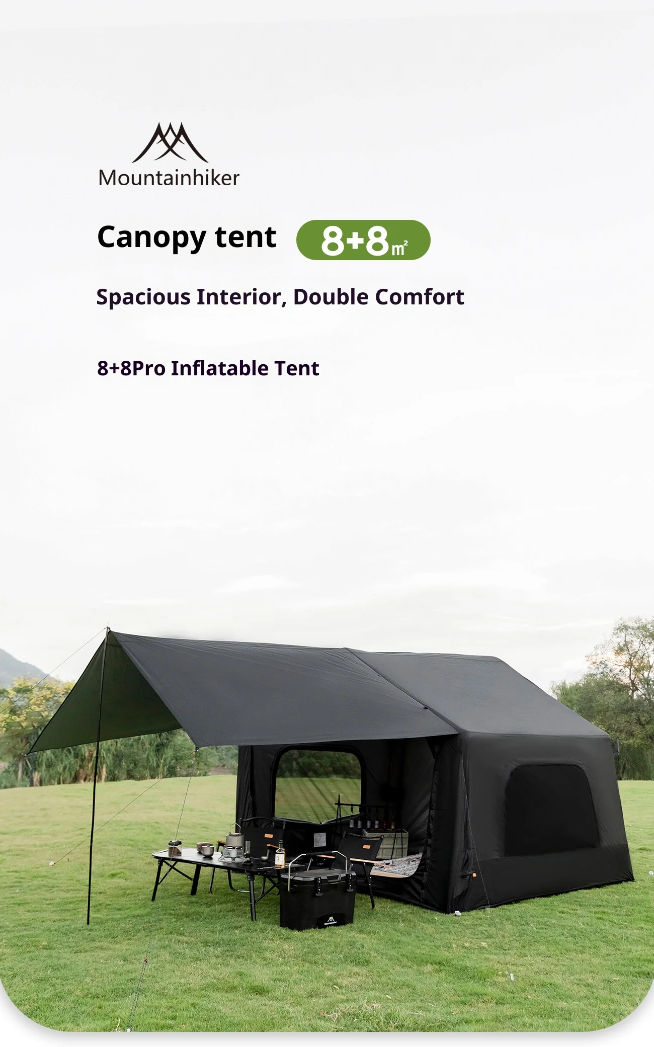 Mountainhiker AIR 8+8 PRO Inflatable Tent Spacious Interior Cabin Style 4-6 Persons Black Silver Coated Sunscreen With Extended Awning Canopy Outdoor