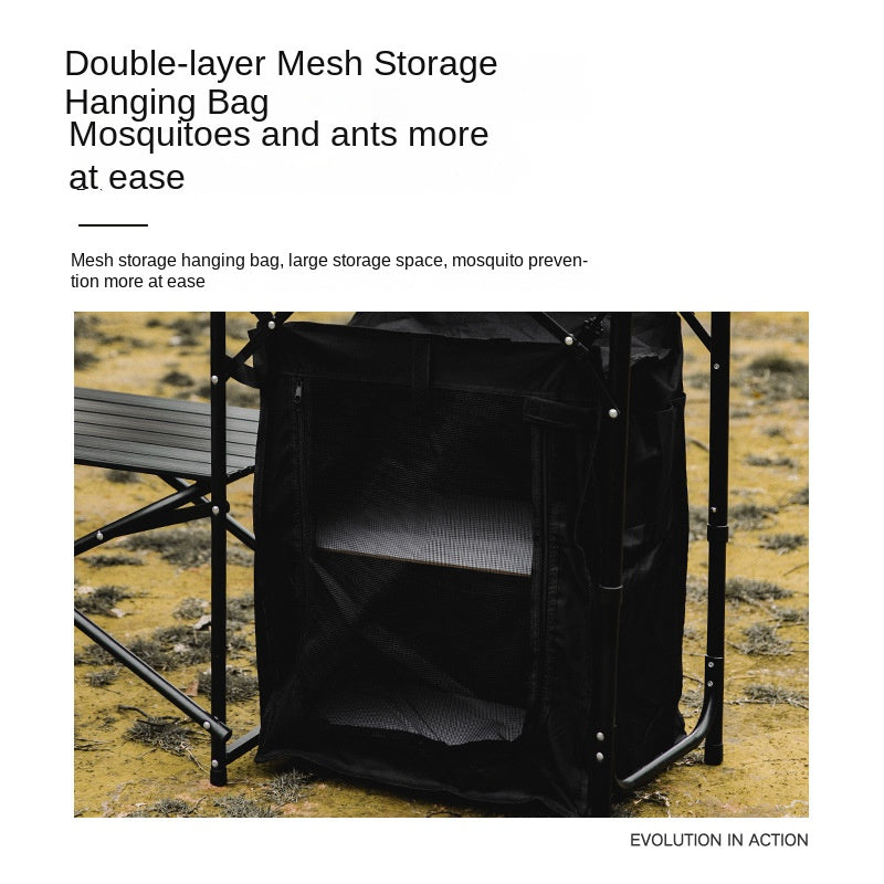 Mountainhiker Black Mobile Kitchen Table Portable Foldable Multipurpose One Piece Folding Outdoor Kitchen Camping Multi-layer Storage With Built-in Wind Deflector