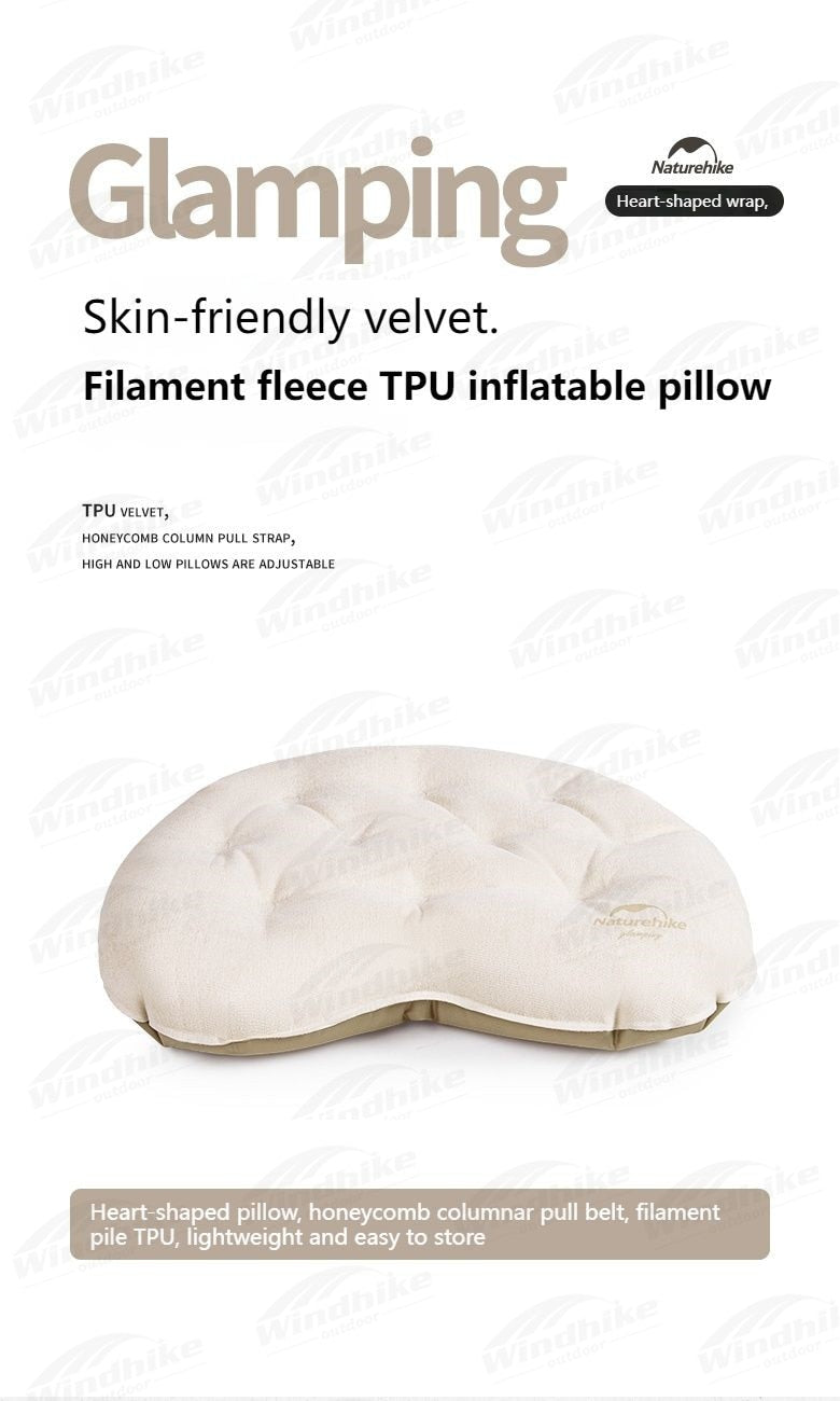 Product Description: Brand: Naturehike Model NO.: CNH22ZT009 Name: Xin Yi-Silk Velvet Heart Shaped TPU Inflatable Pillow Weight: About 175g Size: 47x35x9CM Packing size: Ο8x13CM Material: polyester TPU Color: Light Khaki