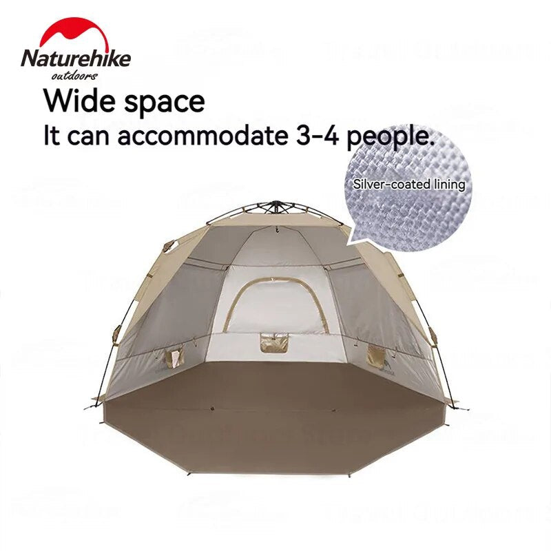 Naturehike Fast Automatic Beach Tent Silver Coated Sunscreen Shade for 3-4 Person Canopy Awning Tarp Waterproof Sunshade Outdoor Camping Panoramic View Breathable Quick Open Nature Hike