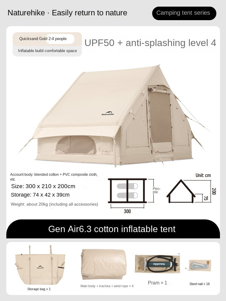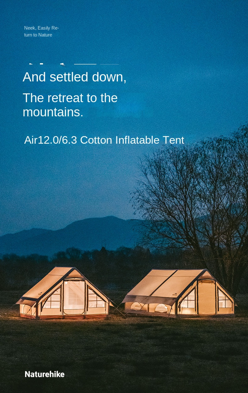 Naturehike GEN Air Series 12/6.3 Inflatable Tent 4-8 Persons Premium Fast Build Eaves Tent Large Area Shelter Blended Polyester Cotton Waterproof