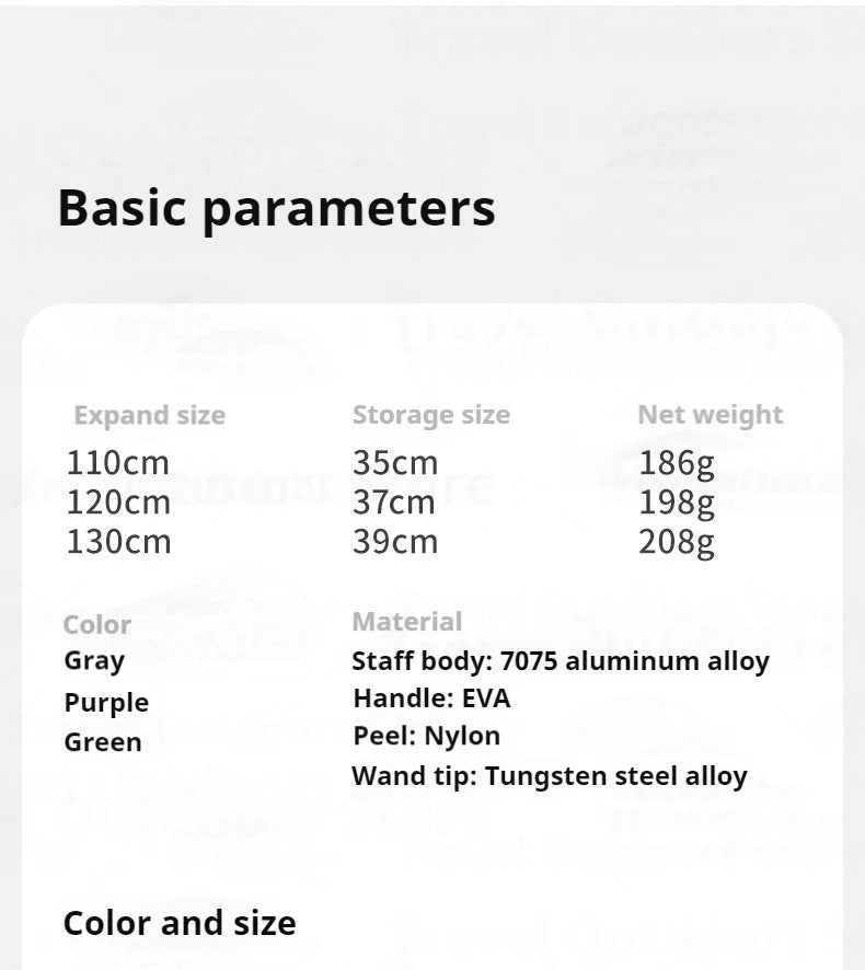 Material: 7075 Aluminum AlloyNylon/Tungsten steel alloy/Eva (Handle)