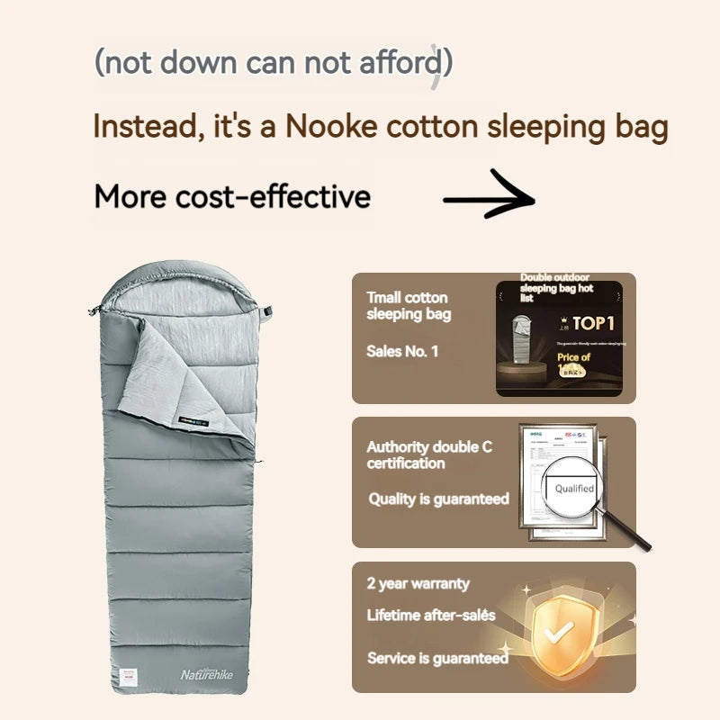 Naturehike M Series Hooded Sleeping Bag Portable Foldable Square Spliceable Envelope Double Person Washable Summer Winter Warm Sleeping Bag