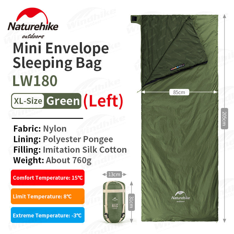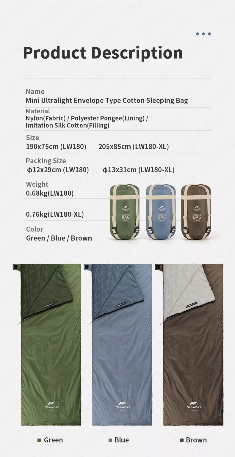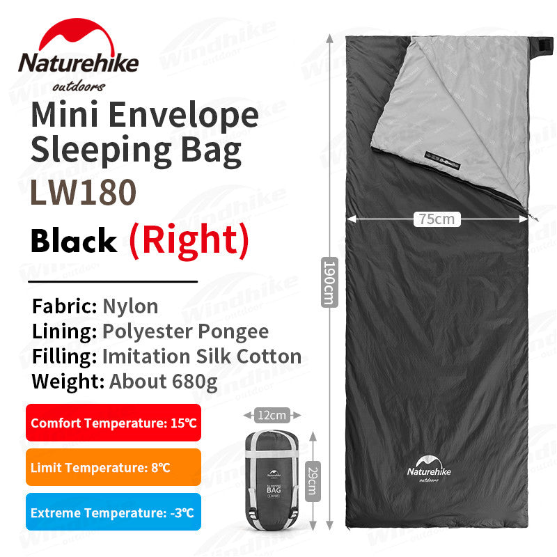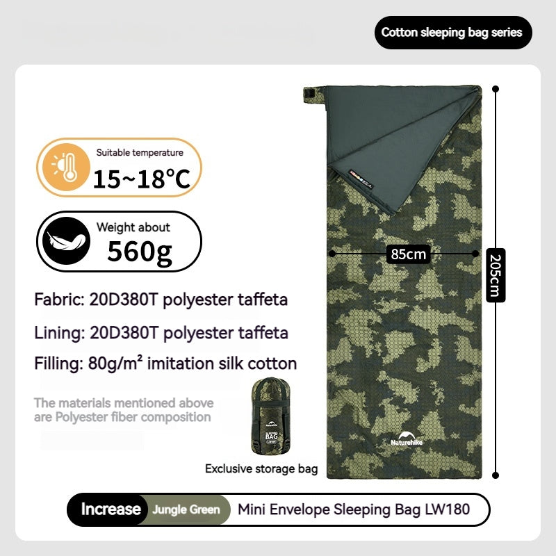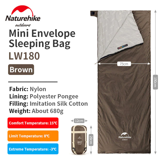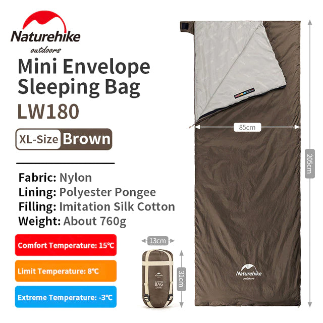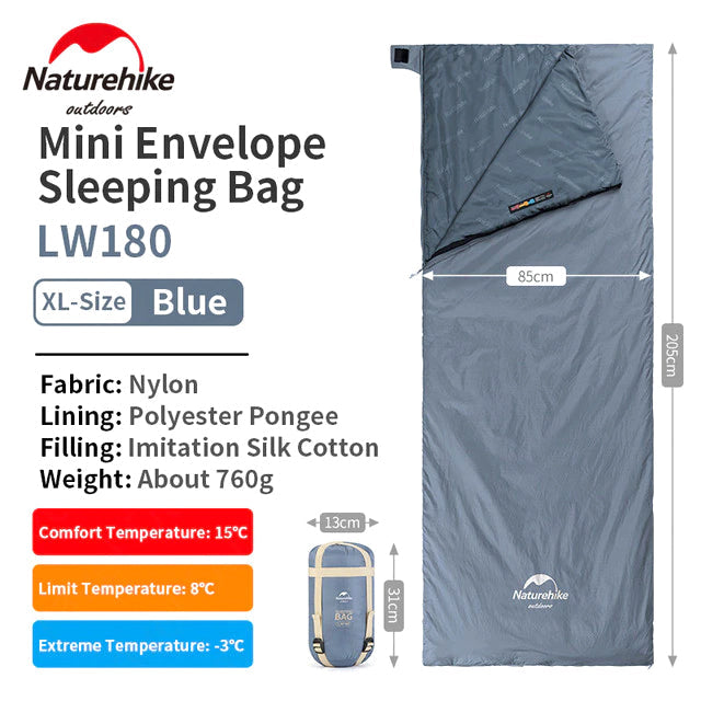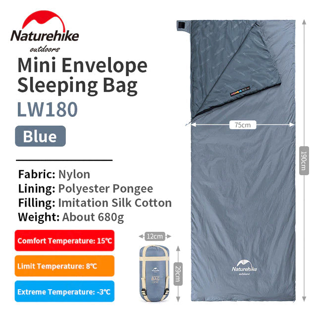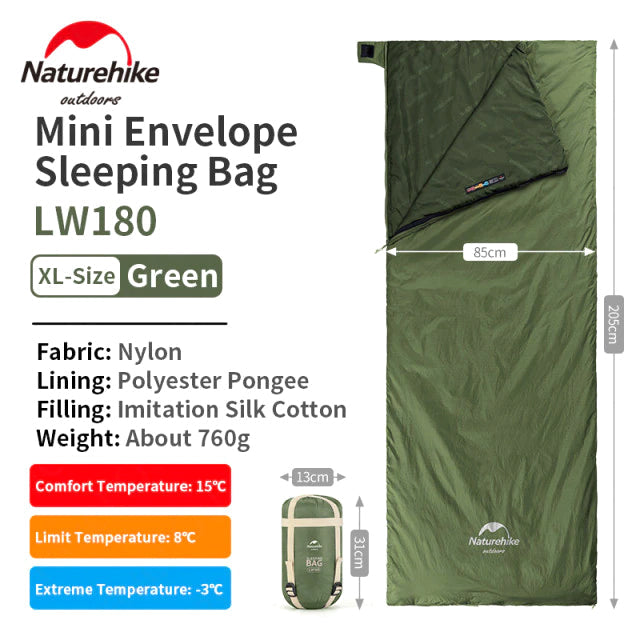 Naturehike Mini Envelope Sleeping Bag Outdoor LW180 Portable Ultralight Breathable Cotton Fabric Thick Foam for Tent Adult Comfortable Camp Sleep Bed Pad