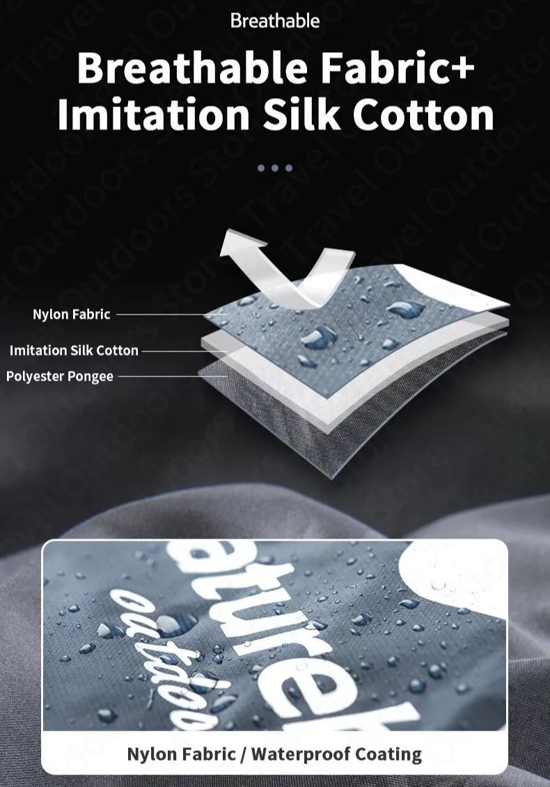 Material: Nylon(Fabric) / Polyester Pongee(Lining) / Imitation Silk Cotton(Filling)
