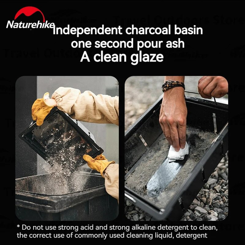 Naturehike Multifuctional Travel Barbecue Table Folding BBQ Grill Outdoor Camping Picnic Portable Integrated Built-in Cooking Charcoal Grill with Lamp Pole Easy to Clean Nature Hike