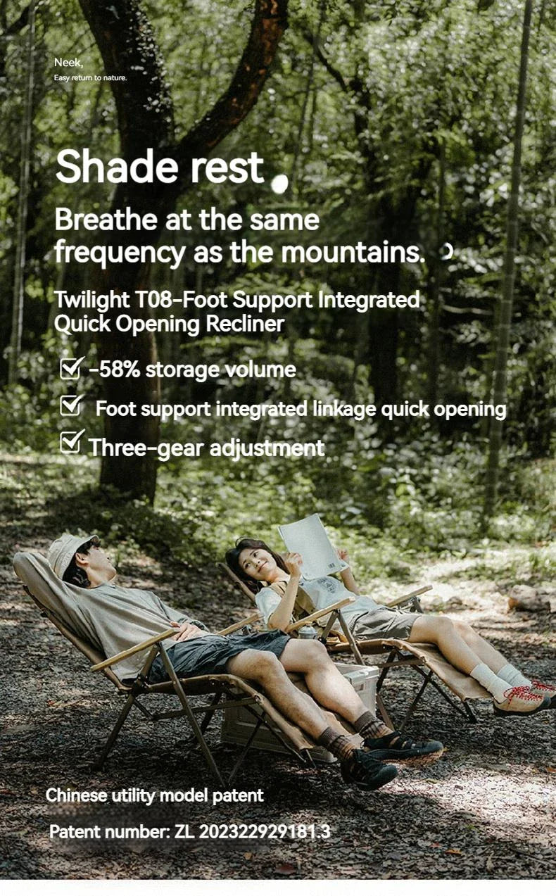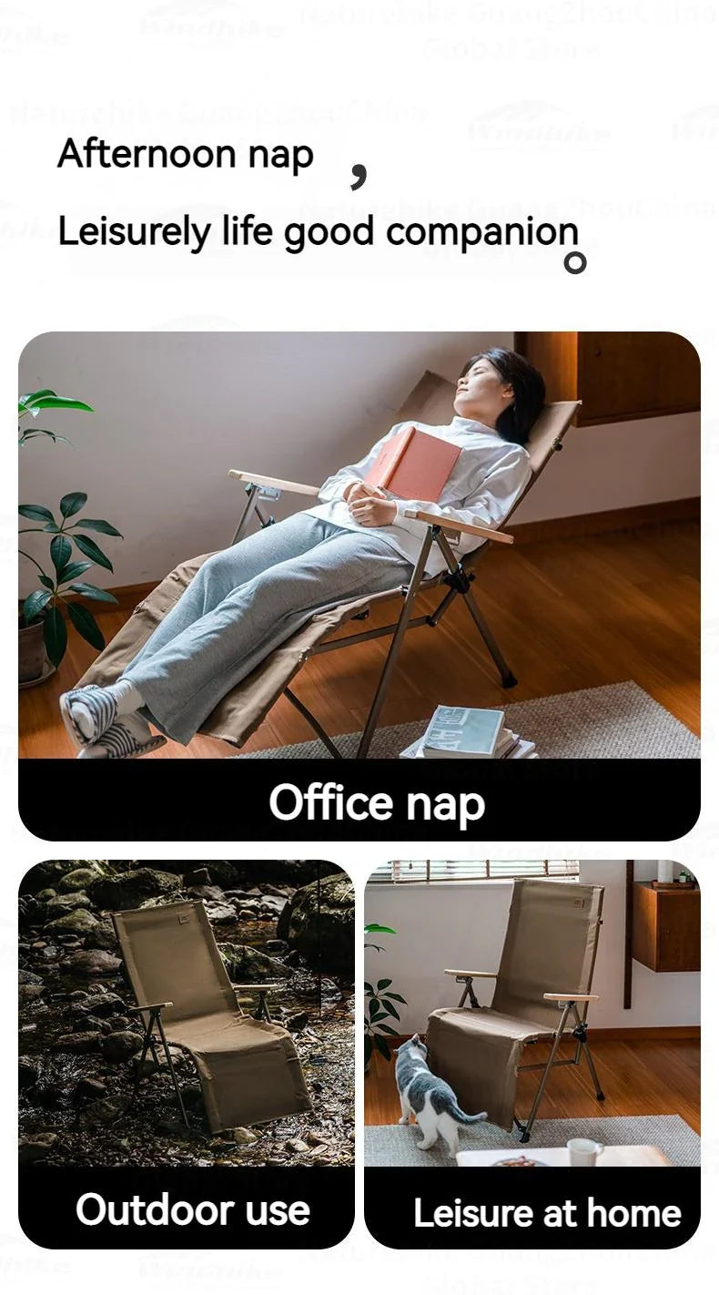 Naturehike NIGHTFALL Folding Recliner Chair Adjustable Backrest Portable Leisure Lounger Camping Outdoor Hiking Fishing Beach Travel Armchair Footrest Heavy Duty Original Nature Hike