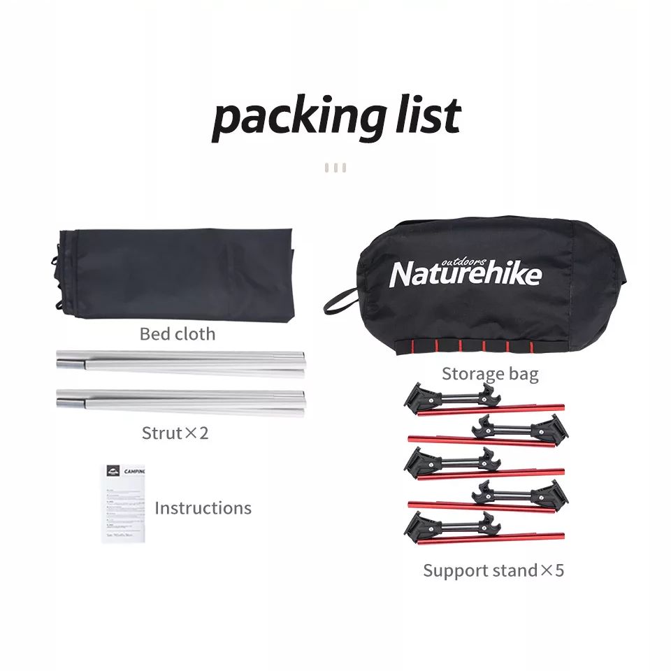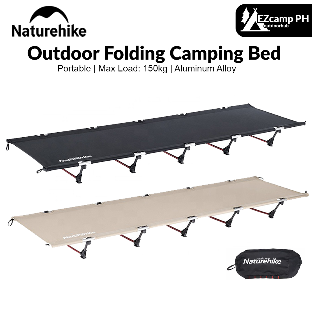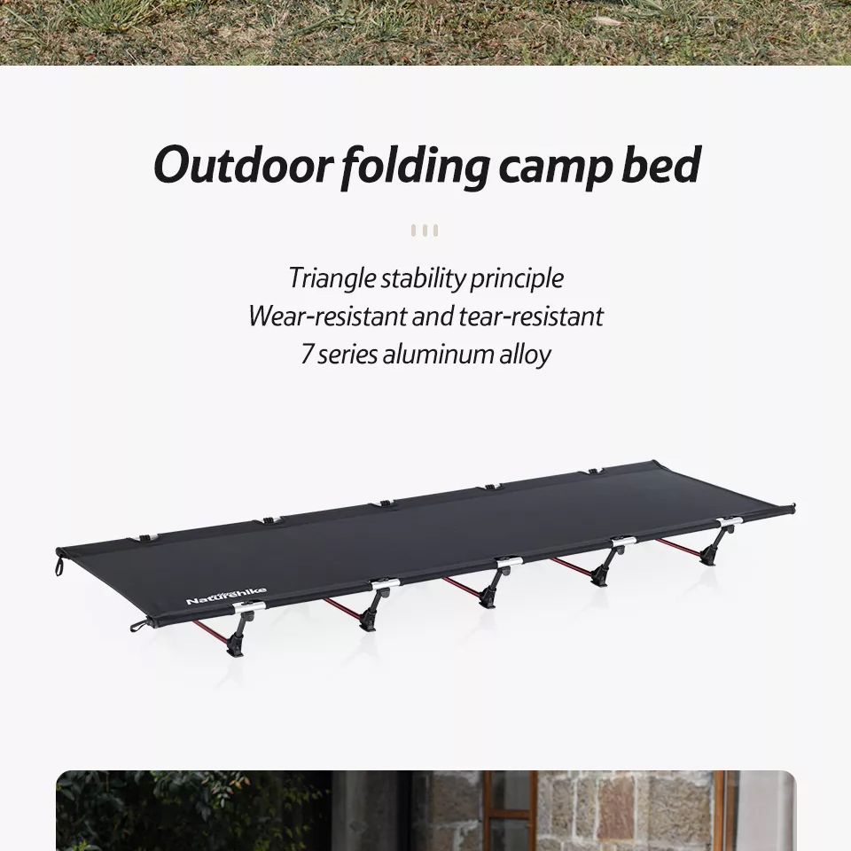 Naturehike Outdoor Portable Folding Low Rise Camp Bed Load up to 150KG Foldable Light Weight Aluminum Alloy Camping Sleeping Cot Gear Nature Hike