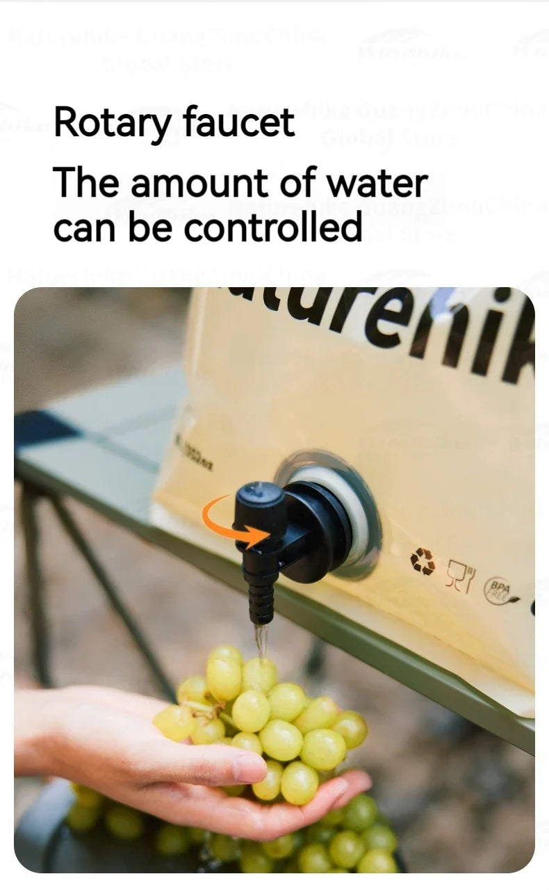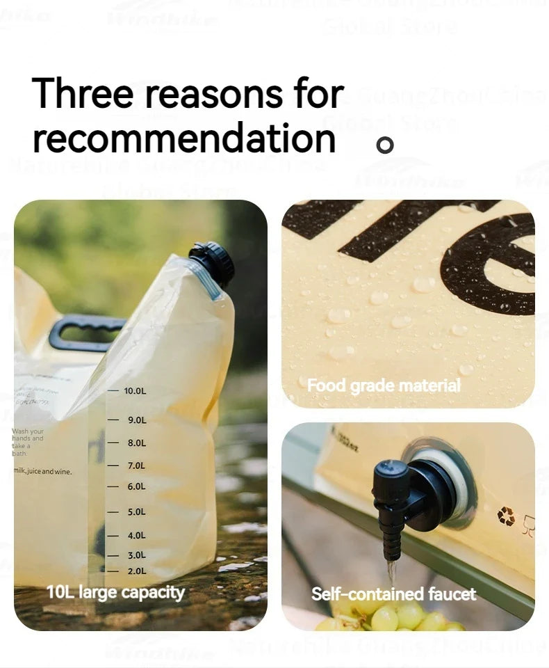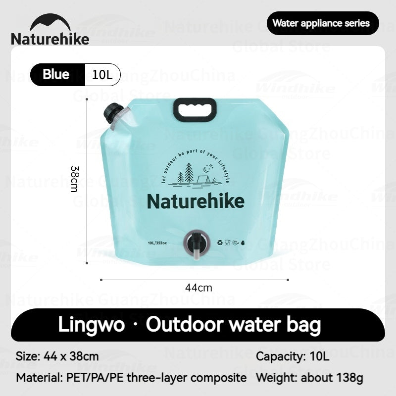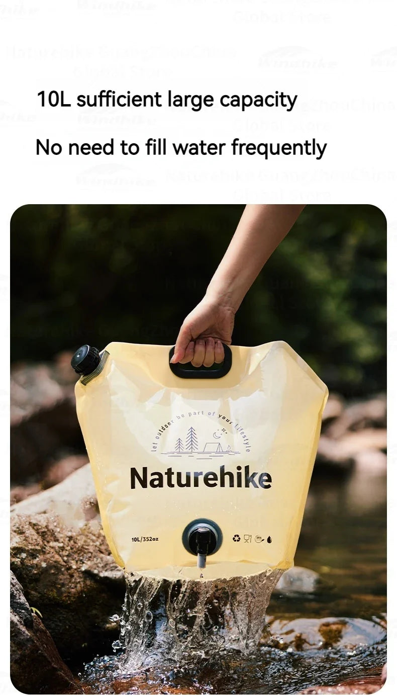 Naturehike Outdoor Water Bag Portable Lightweight Foldable 10L Large Capacity With Faucet Handle Folding Thick Soft Food Grade Water Container Camping