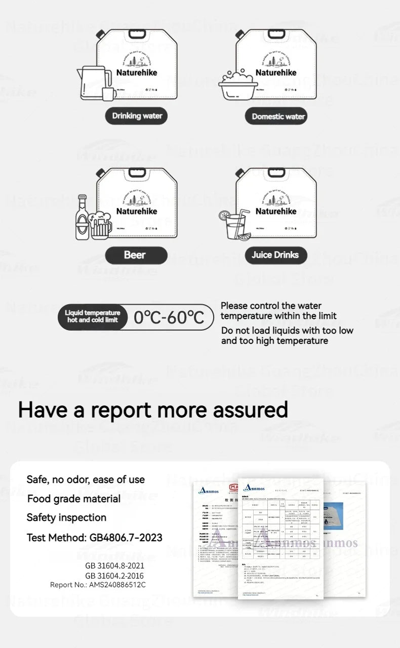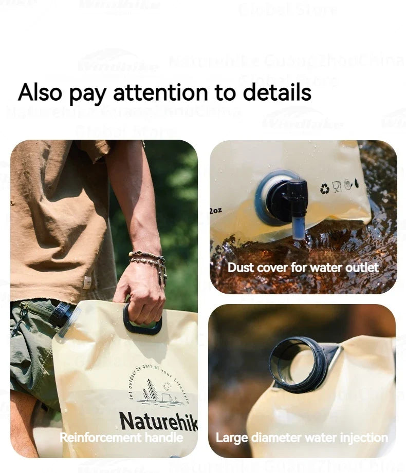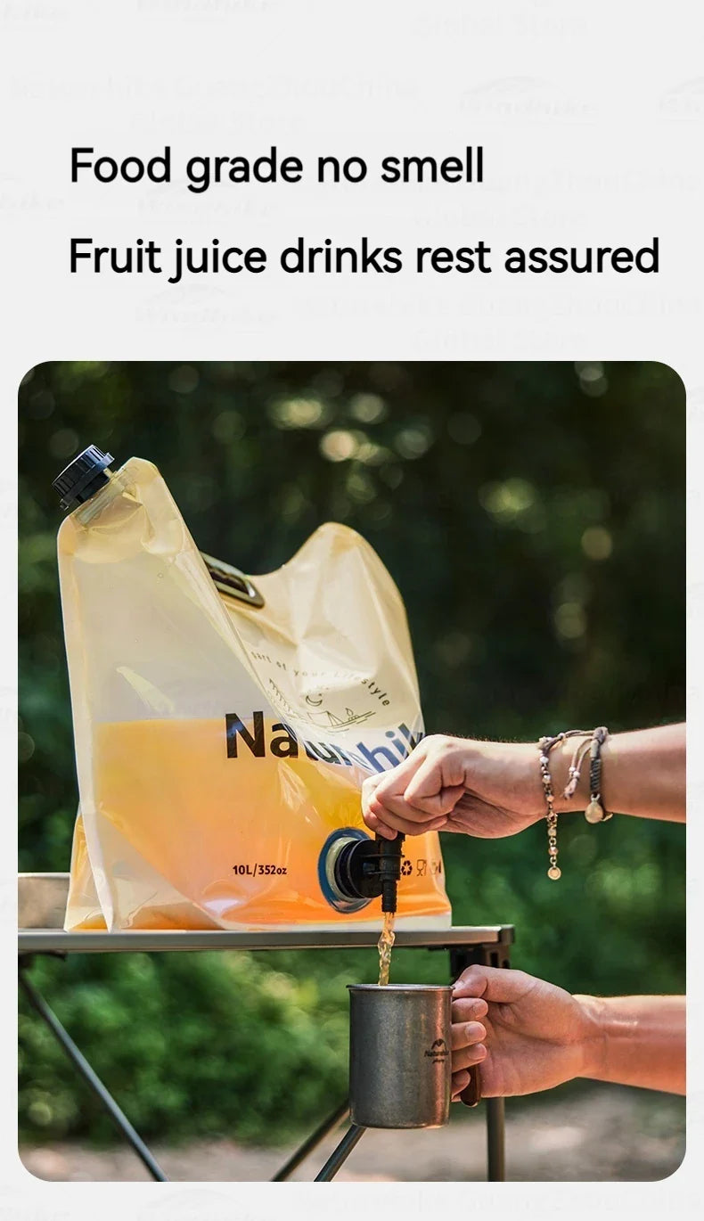Naturehike Outdoor Water Bag Portable Lightweight Foldable 10L Large Capacity With Faucet Handle Folding Thick Soft Food Grade Water Container Camping