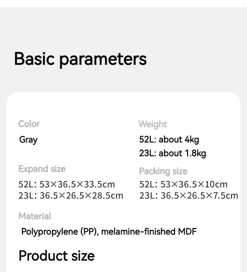 Packing Size: 52L:53x36.5x10cm/23L:36.5x26.5x7.5cm