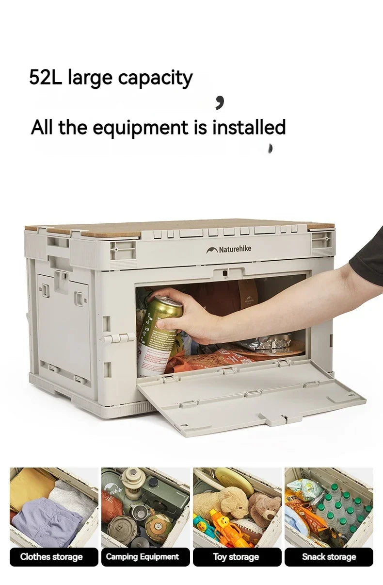 Naturehike PP Folding Storage Box Outdoor Camping Travel Large Box Equipment Portable Multifunctional Car Trunk Storage Cabinet With Table Board