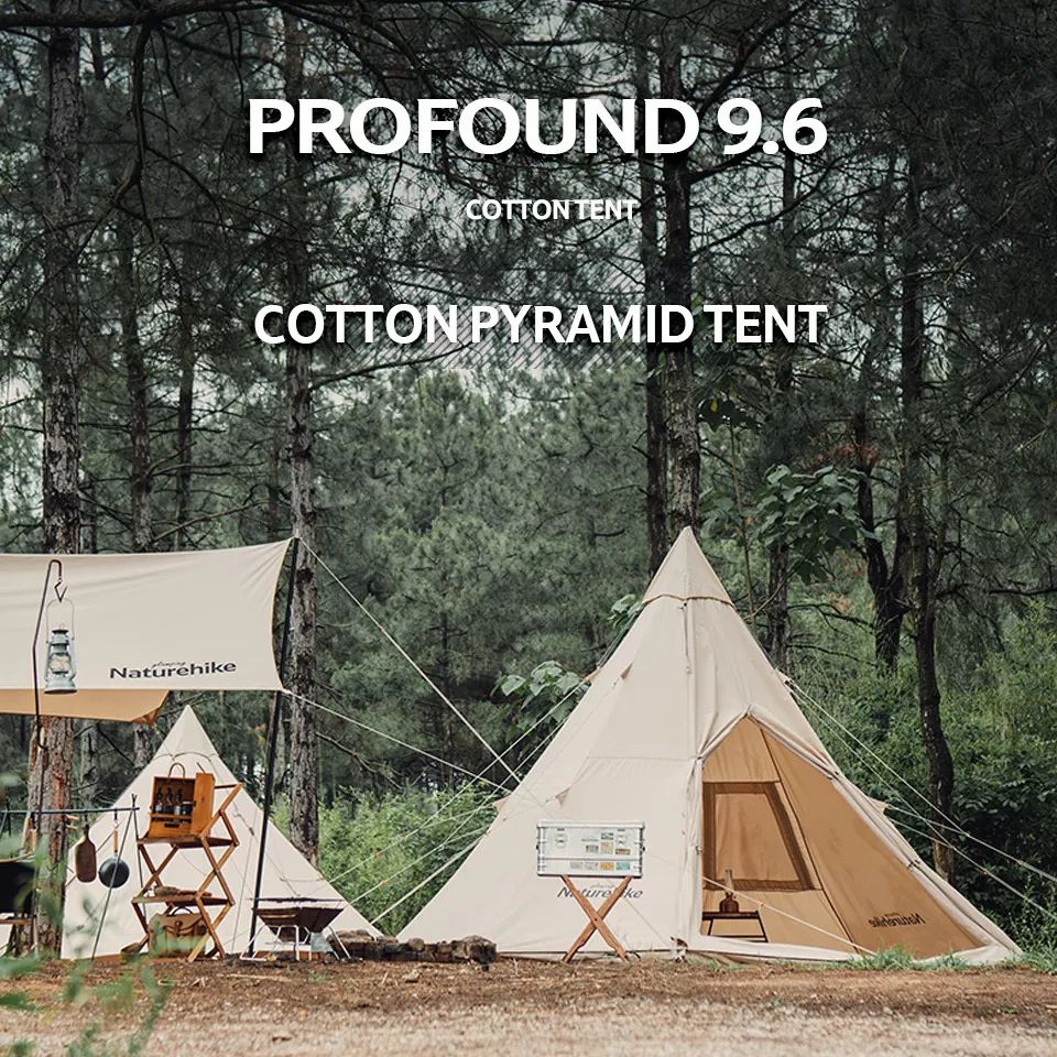 Naturehike PROFOUND Series 9.6 Cotton Pyramid Bell Camping Glamping Tent 9.3m² Large Family Group Waterproof Outdoor for 5 to 8 Person Tipi Tepee