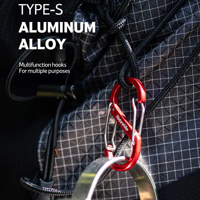 Naturehike S-Type Dual Aluminum Alloy Carabiner Buckle Small Medium Large 4CM 5CM 9CM S Type Hanging Double Utility Strap Keychain Holder Heavy Duty Hook Nature Hike Key Chain
