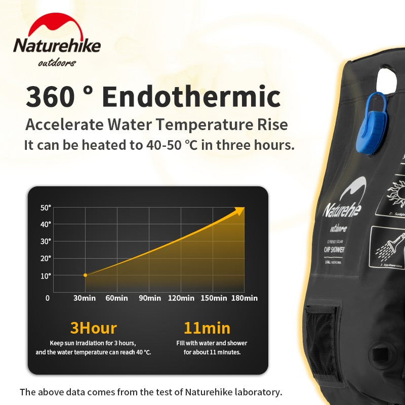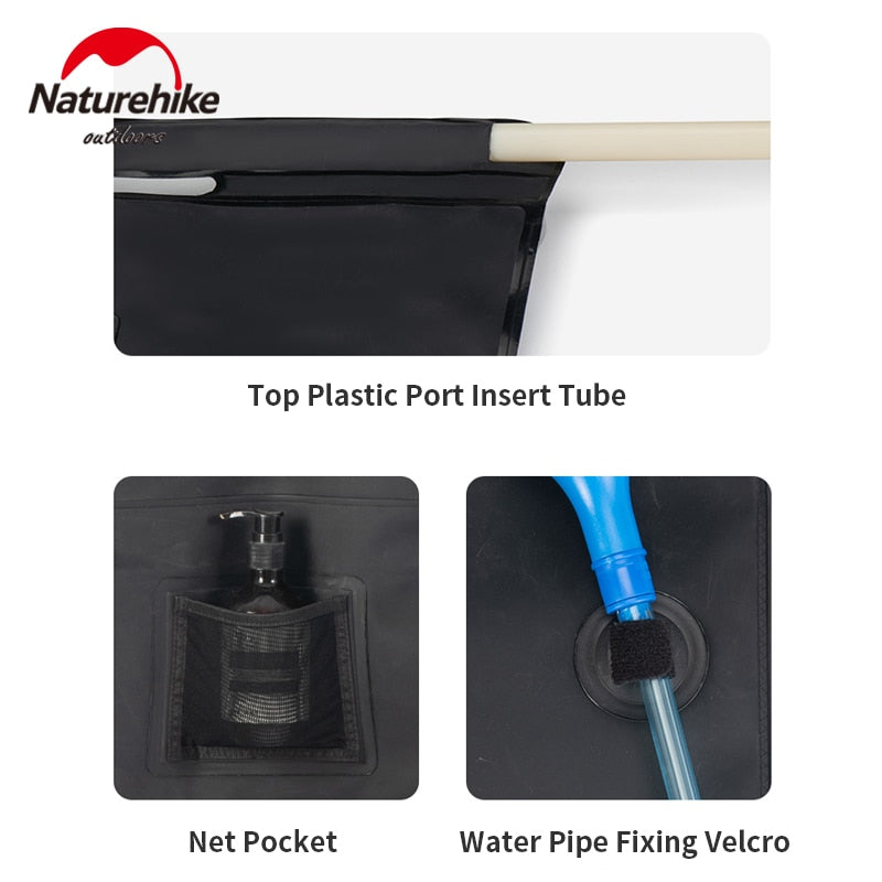 Naturehike Solar Camp Shower Outdoor Portable Foldable Solar Sun Heated Bath 20L Capacity Thicked Mobile Shower Bag 3 Hour Heating Camping Hiking Travel Bathing Heavy Duty Original Nature Hike