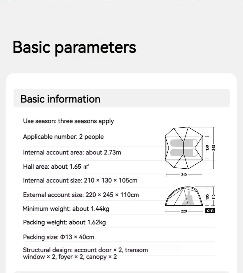 Structural Design:Tent Door x2, Air Window x2, Foyer x2, Canopy x2