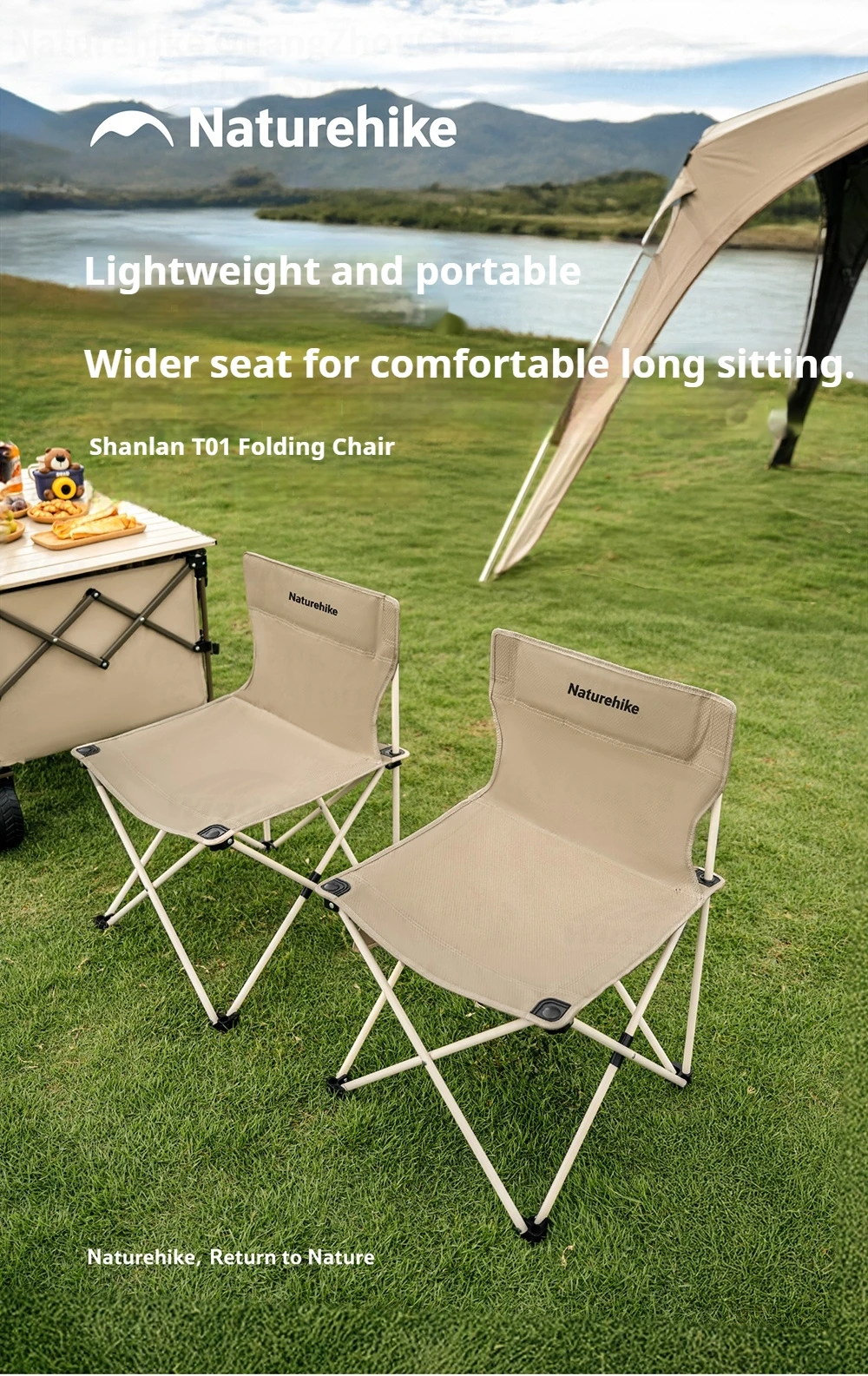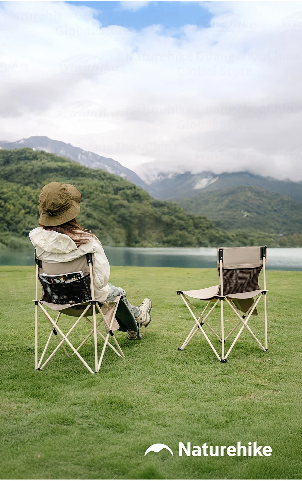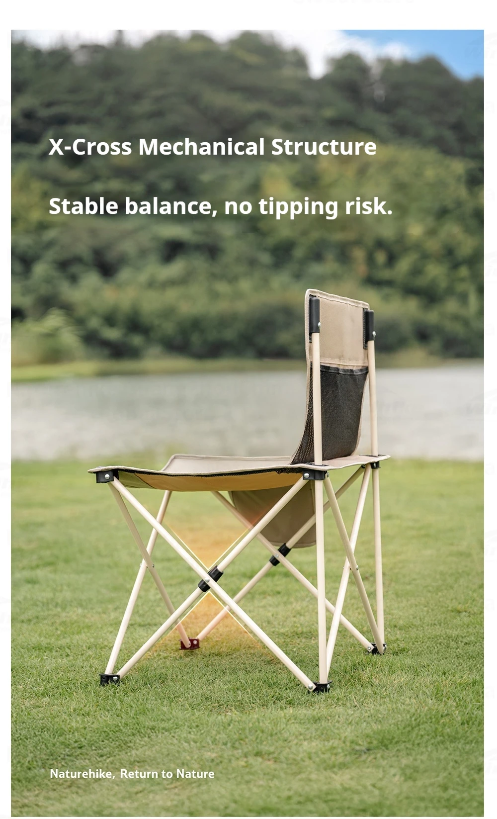 Naturehike T01 Folding Chair Heighten Widened Comfortable Beach Chair With Side Pocket Load Bearing 200kg Fishing Seat X-Shaped Structure Support Camping