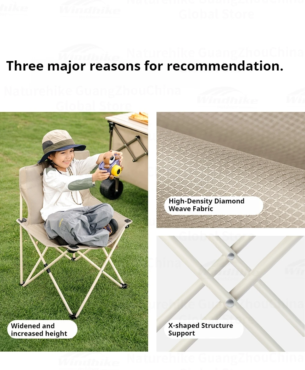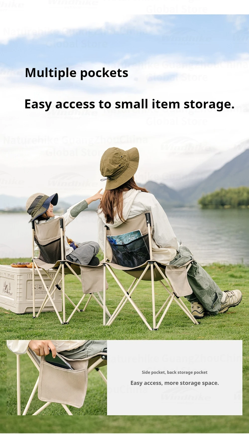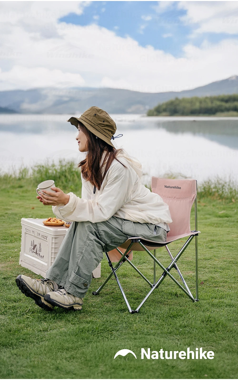 Naturehike T01 Folding Chair Heighten Widened Comfortable Beach Chair With Side Pocket Load Bearing 200kg Fishing Seat X-Shaped Structure Support Camping