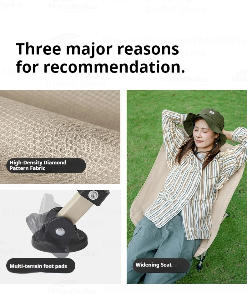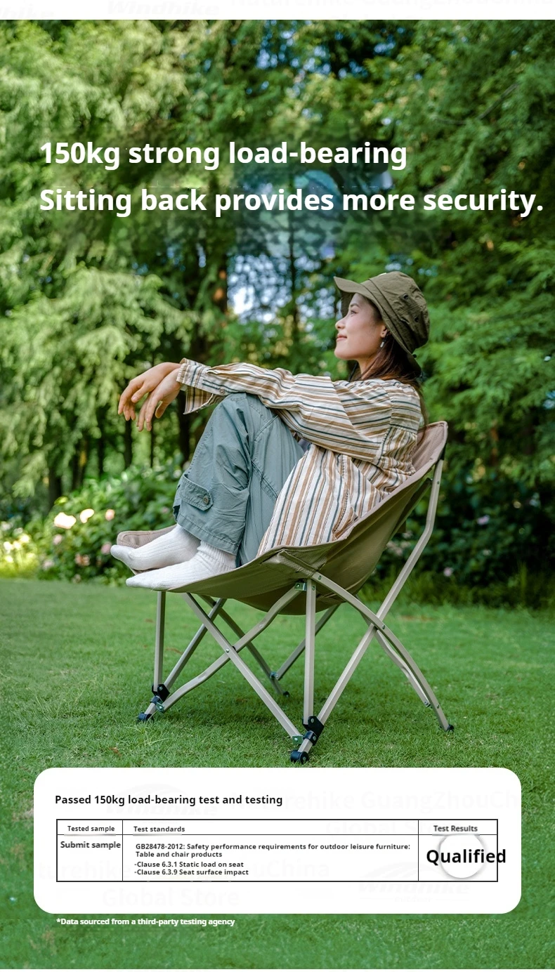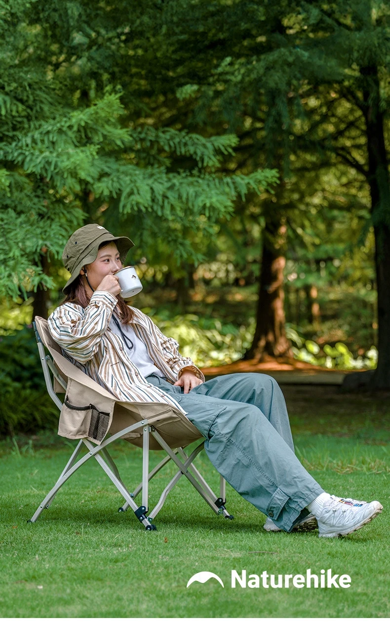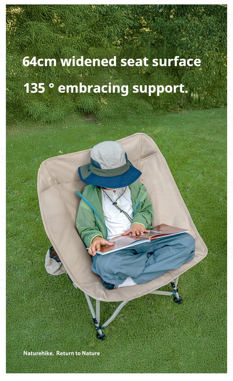 Naturehike T04 Camping Moon Chair Portable Lightweight Comfortable Folding Chair 64cm Wide Seat With Side Pocket 107T High Load Bearing 150kg Outdoor