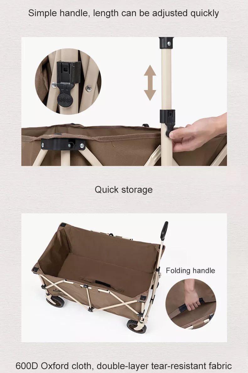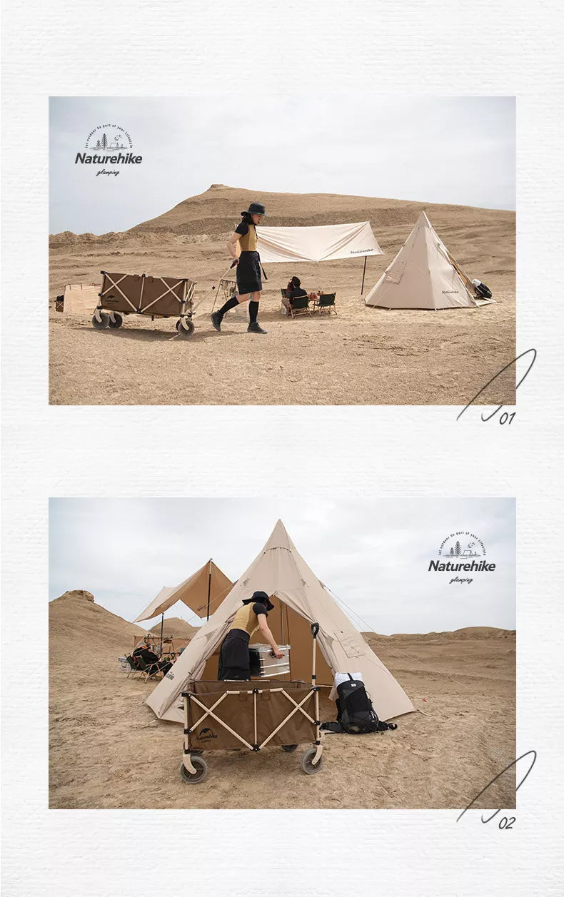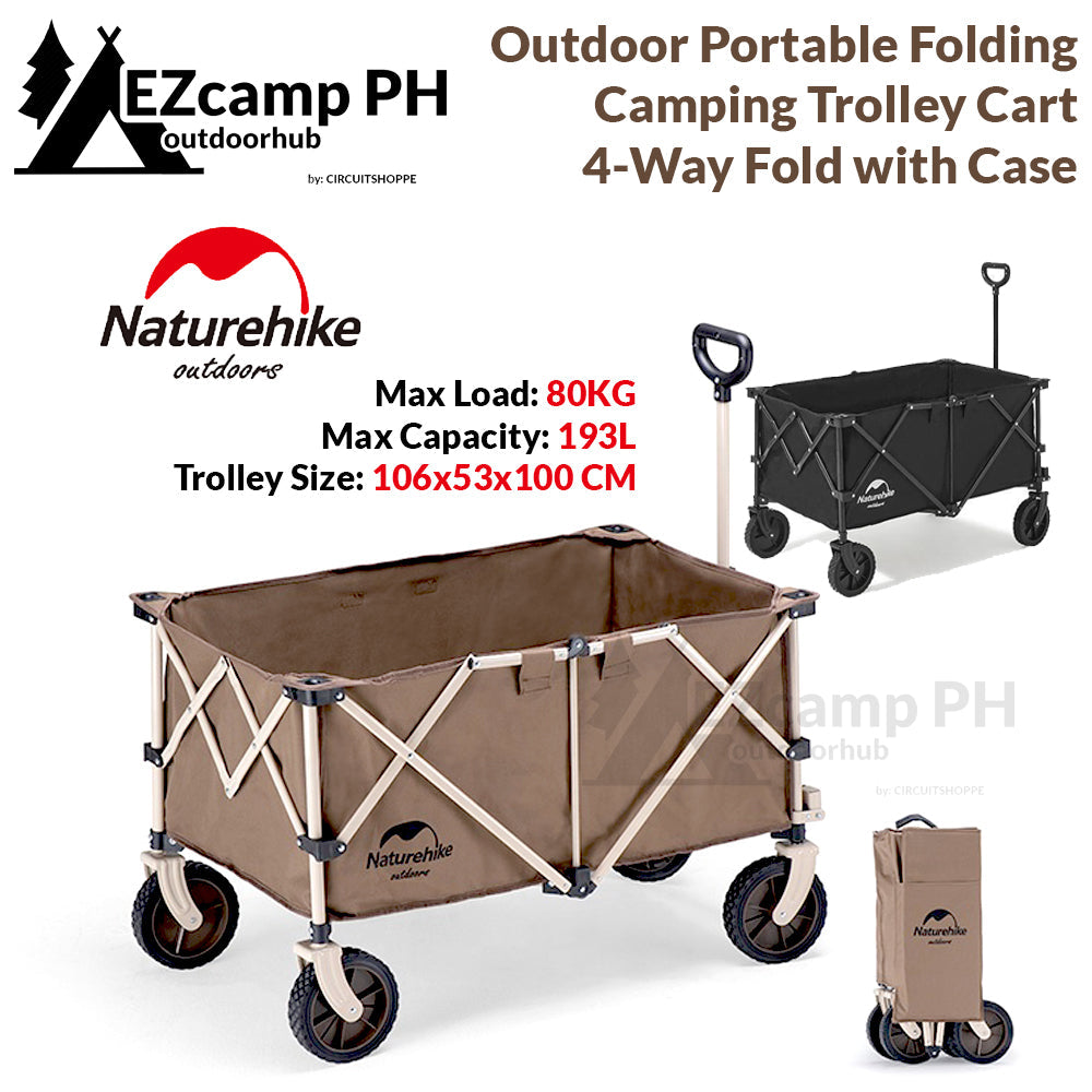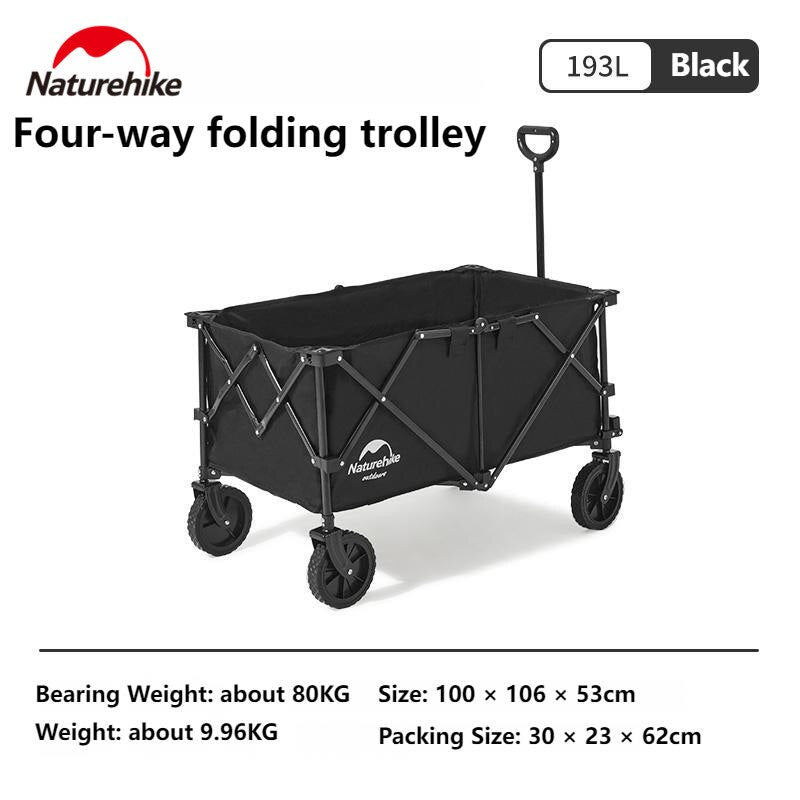 Naturehike TC02 193L Outdoor Portable Black Trolley Carrying Cart 4 Way Folding Camping Glamping Camp Travel Wagon 80KG Max Load Foldable Collapsible