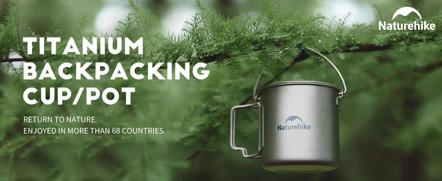 Naturehike Titanium Backpacking Cup / Pot Portable Ultralight Titanium Cup Outdoor Water Cup Cookware Mug with Foldable Handle Camping Equipment