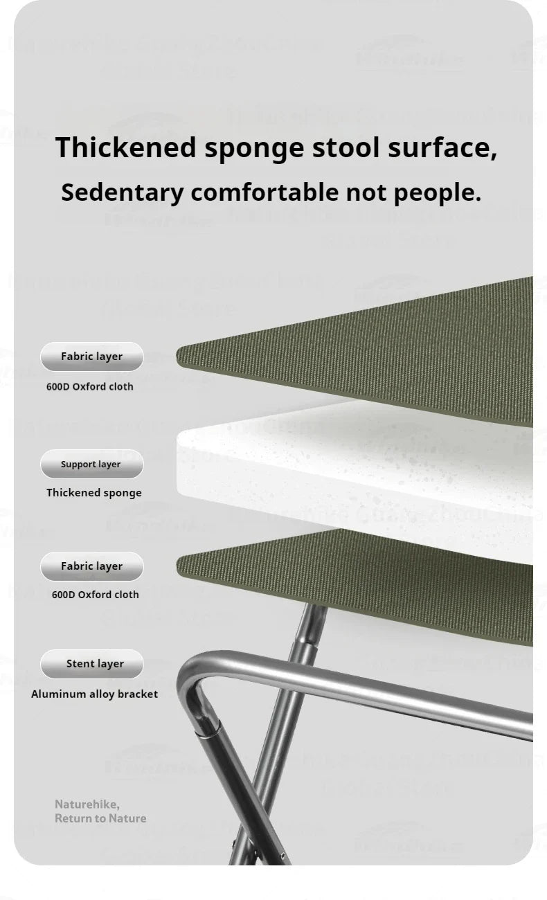 Naturehike Ultralight Folding Stool Portable Mini Chair 7075 Aluminum Alloy Fishing Outdoor Camping Chair 3CM Thick Cushion Seat Load 180kg