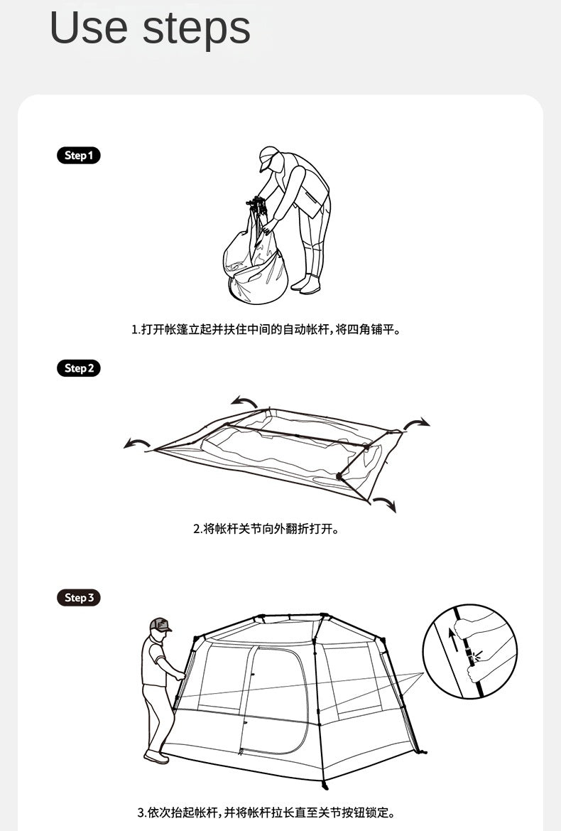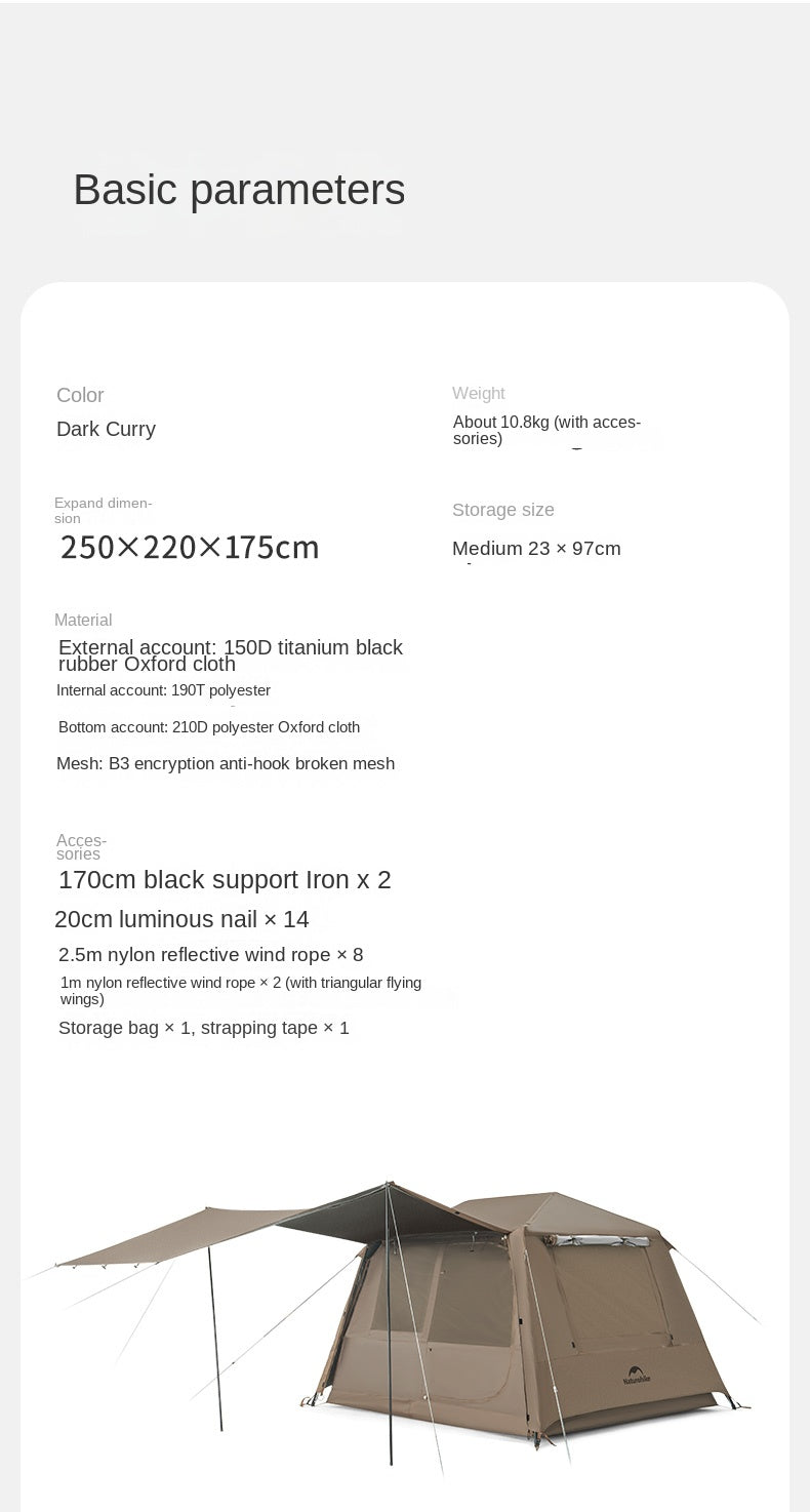 Naturehike VILLAGE 5.0 Gen 3 Fast Build Automatic Tent 1 Bedroom 1 Living Room Extended Canopy Double Layer Tent 4 Person Ti Black Coated Sunscreen