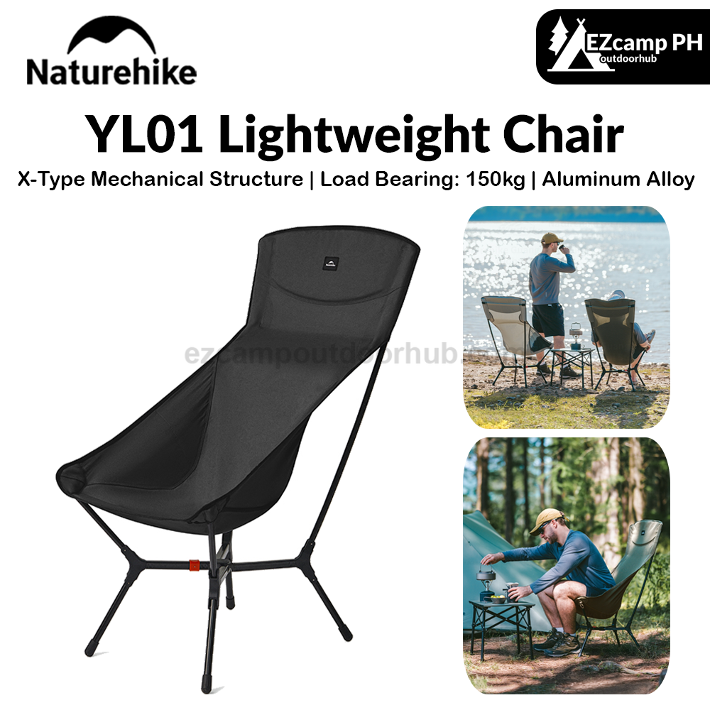 Naturehike YL01 Lightweight Chair Portable Camping Moon Chair Quick Open Wide Seats Load Bearing 150kg X-Type Mechanical Structure Folding Outdoor Fishing Beach Chair Aluminum Alloy